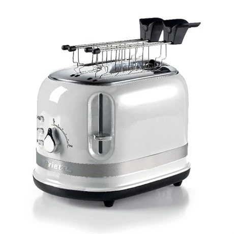 Le toaster moderna 2 fentes 149 Ariete blanc est un grille-pain vintage qui allie esthétique et fonctionnalité. Son style rétro apporte un style moderne et unique au grille-pain 149 Ariete. Equipé de pince, le toaster Ariete Moderna 149 permet de retirer aisément votre pain grillé. Pratique, il s’adapte à vos besoins grâce à ses 3 fonctions d’utilisation : cuisson, décongélation et chauffage. Le brunissage peut être réglé sur 6 niveaux pour dorer votre pain ou vos sandwichs à souhait. Accompagné d’un arrêt automatique, le grille-pain éjecte automatiquement du grille-pain. Après utilisation, le travail de nettoyage est simplifié grâce à la rainure de centrage et au plateau ramasse-miettes mobile.