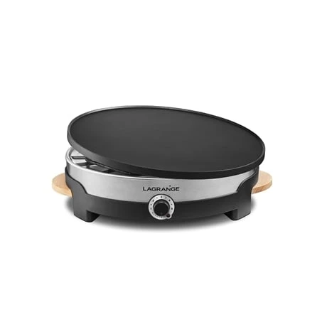 Le crépière Maxi Crêpes de Lagrange permet de réaliser des crêpes de 35 centimètres de diamètre. Elle est dotée d’une plaque de cuisson amovible en aluminium avec revêtement anti-adhésif, d’un thermostat réglable sur 5 positions pour ajuster la température de la plaque ou simplement la maintenir chaude, et d’un voyant de contrôle. Ses larges poignées en bois assurent une manipulation en toute sécurité, et son support amovible pour spatules permet de garder tous vos ustensiles à portée de main. La crépière Maxi Crêpes est vendu avec une grande spatule, une grande louche, un répartiteur en bois et un rince répartiteur.