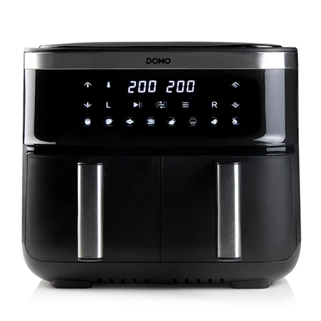 Elle s’utilise pour cuire vos frites, croquettes et aliments panés mais aussi cuire de la viande, un cake ou une quiche et remplacer votre four. Vous pouvez également l’utiliser pour réchauffer vos aliments. Avec sa belle capacité de 2 x 4 L et ses 8 programmes automatiques, la friteuse à air chaud Domo est pratique. Ses 2 cuves à frire sont équipées de plaques grill antiadhésives. Vous n’avez pas de transfert de goût ou d’odeur et pouvez régler séparément les 2 cuves.
