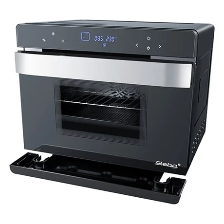 Vous pouvez régler la température jusqu’à 230c°. Pour plus de confort l’appareil possède un éclairage intérieur. Le four intègre également une minuterie allant jusqu’à 7 heures. Pour vos cuissons à la vapeur l’appareil est muni d’un réservoir d’eau de 1450ml.