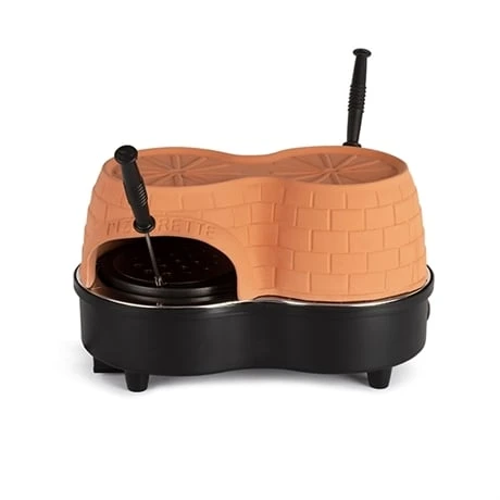 Cuisez simultanément 2 mini pizzas de 11 cm de diamètre avec le Pizza party duo. Afin de vous offrir une cuisson traditionnelle, le four est conçu avec un dôme en terre cuite. Cuisez vos pizzas en 5 à 7 minutes. Le pizza party possède un plateau en revêtement antiadhésif.