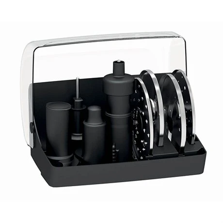 - – 2 Disques éminceurs et râpeurs : pour émincer et râper les fruits, les légumes et le fromage dans différentes épaisseurs (2 et 4 mm) + coffret de 3 disques Cuisine Créative