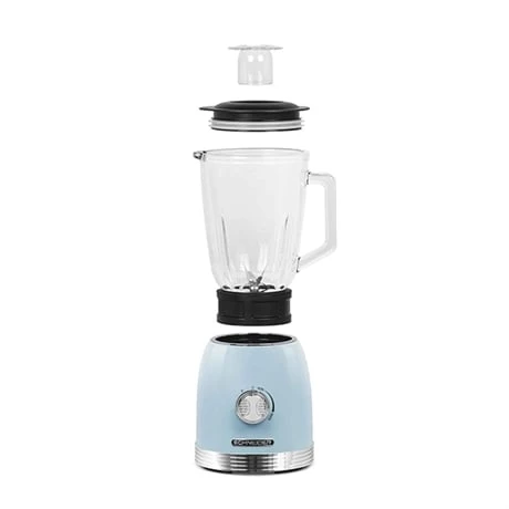 Intégré dans la gamme vintage de Schneider, ce blender 1,5 L 800 W dispose de formes arrondies, de finitions chromées, d’un bouton aviateur et un coloris bleu rétro. Une fois placé sur votre plan de travail, il se transformera en décoration à part entière pour apporter une touche esthétique unique à votre cuisine. Et pour limiter sa place, il a été conçu dans un format très compact, offrant de hautes performances malgré ses petites dimensions.