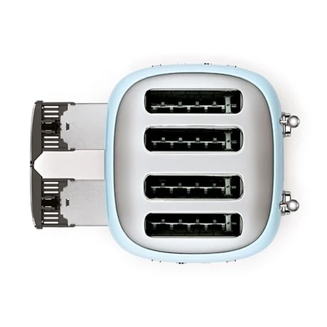 Côté fonctionnalités, le toaster 4 fentes SMEG bleu azur est équipé pour s’adapter à toutes les situations : 6 niveaux de brunissement différents, 4 fentes contrôlables deux par deux, définissez votre petit-déjeuner selon vos besoins. Avec ses 2000 W de puissance, sa mise en chauffe se fait en quelques instants pour vous faire gagner du temps une fois levé. Et pour faire face à toutes les situations via un seul appareil, le grille-pain SMEG 4 fentes contient trois préréglages. Optez pour la fonction réchauffage, décongélation ou bagel pour ne faire brunir qu’une seule face, et mettez même les tartines les plus grosses grâce à ses fentes extra larges de 36 mm et son système de centrage automatique.